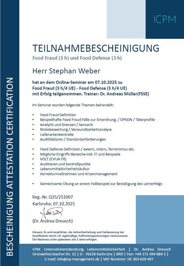 • Anforderungen (Gesetz, Regelwerke (IFS, BRC, FSSC22000)