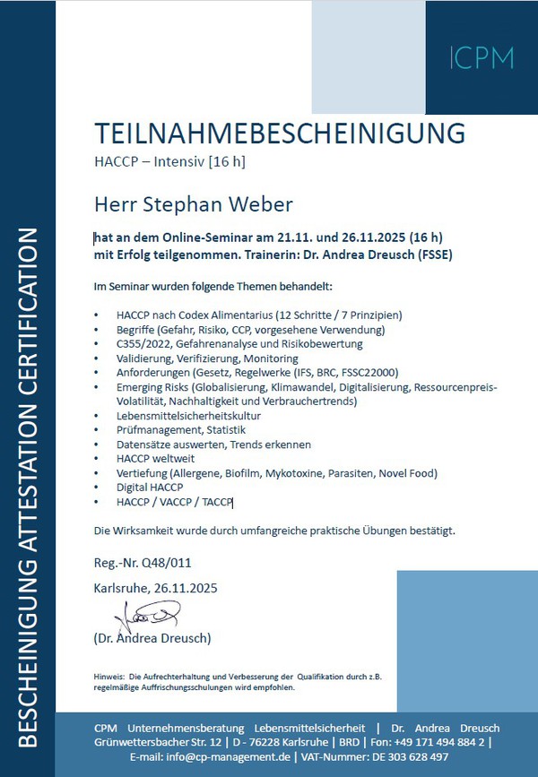• Anforderungen (Gesetz, Regelwerke (IFS, BRC, FSSC22000)